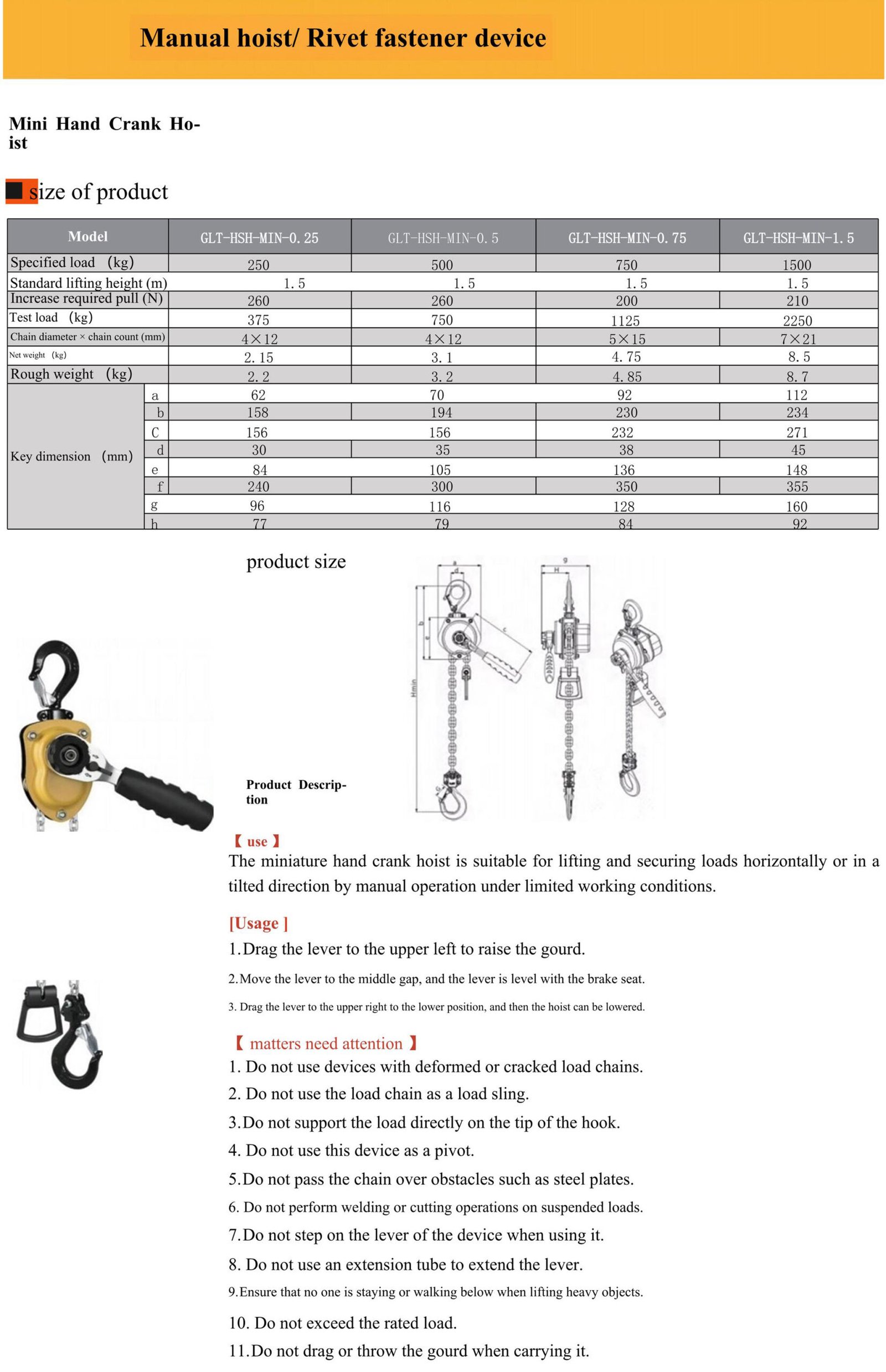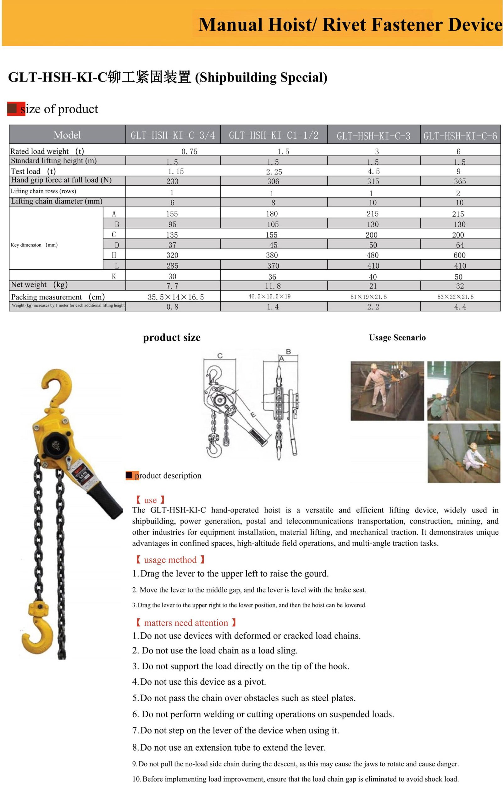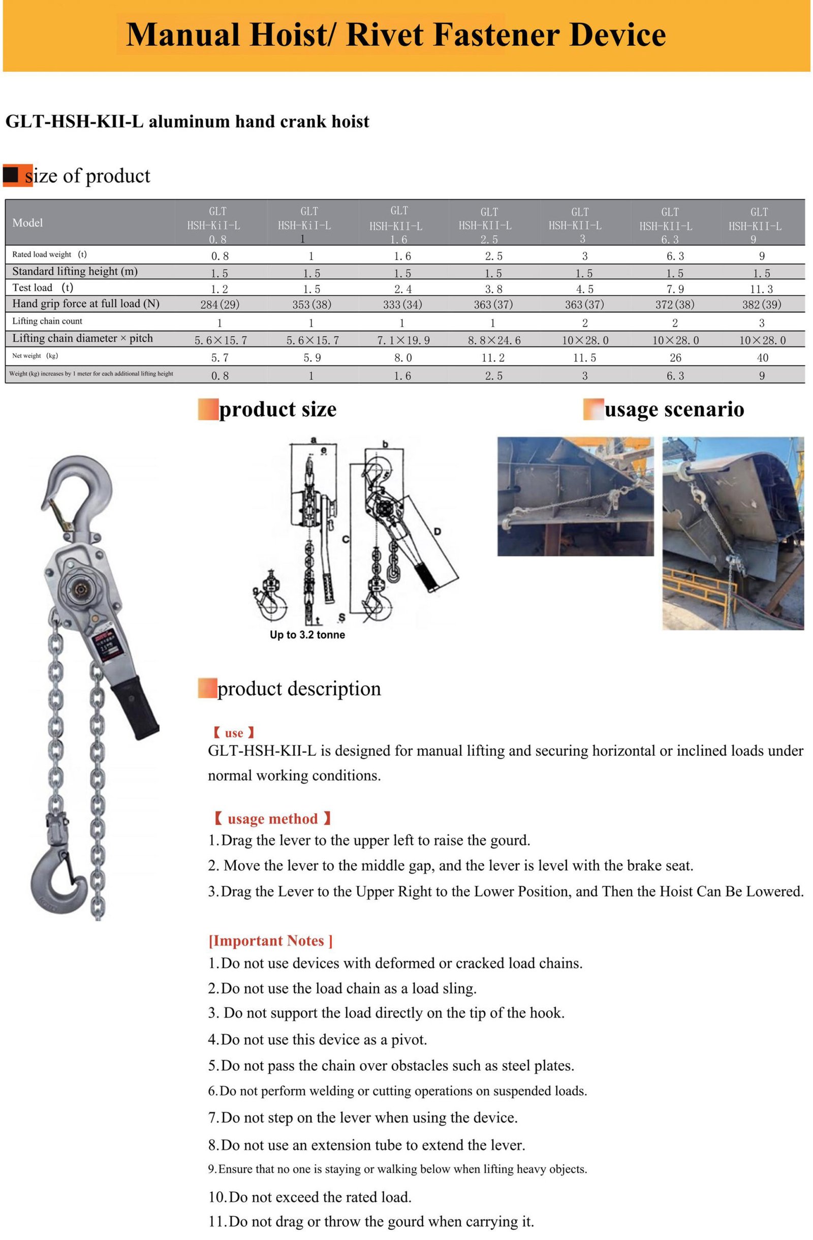 GLT-HSH-KI lever hoist