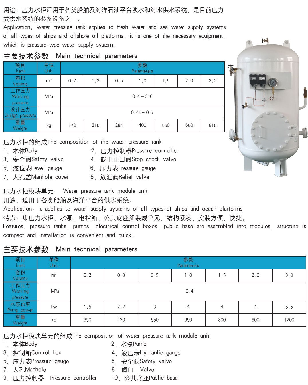 Pressure water tank